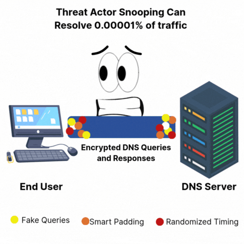 SecureDNS employs multiple layers of defense against AI traffic analysis.